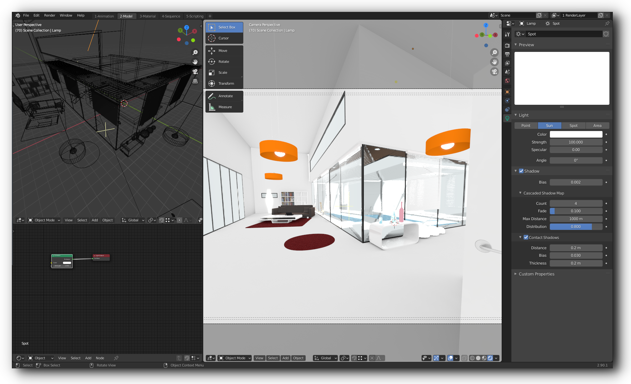 Modelle bauen, Skulpturen aus digitalem "Ton" modellieren, animieren (Feuer! Rauch! Wasser!), Video-Editing, Motion-Capturing, 2D-Zeichnungen in 3D ("Grease Pencil") und ein mächtiges "Node"-System für Effekte und Texturen.